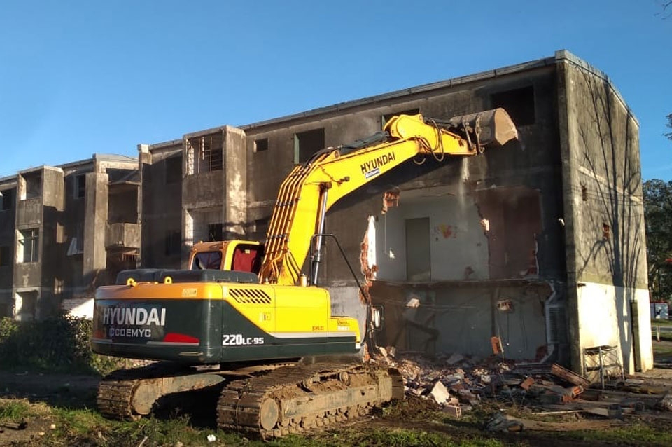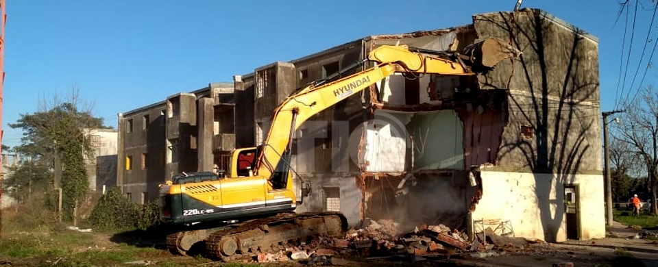 Por estos momentos se lleva a cabo la demolición de la agrupada N° 20. Desde las 9 de hoy en la intersección de M. Grandoli y Roca se llevan adelante los trabajos de demolición con la presencia del secretario de Estado del Hábitat, Diego Leone.