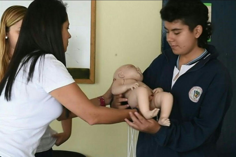 El simulador de bebé, un muñeco de caucho con un software instalado, llegó a sus brazos como parte de un programa de la alcaldía de Caldas dirigido a colegios públicos y privados para limitar los embarazos adolescentes en esta población de 78.000 habitantes.