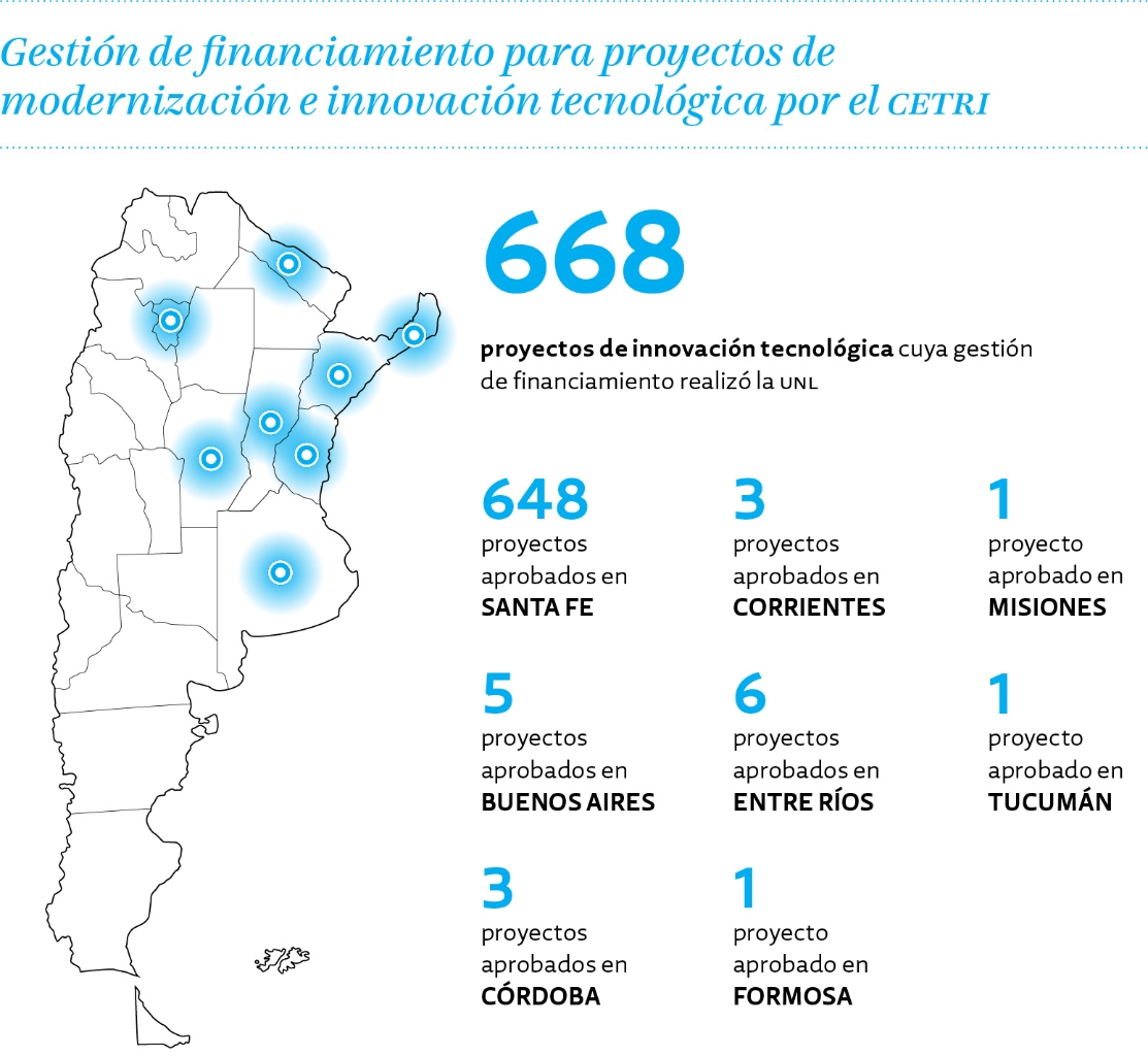 -96 proyectos de innovación tecnológica cuya gestión de financiamiento se realizó en la UNL.