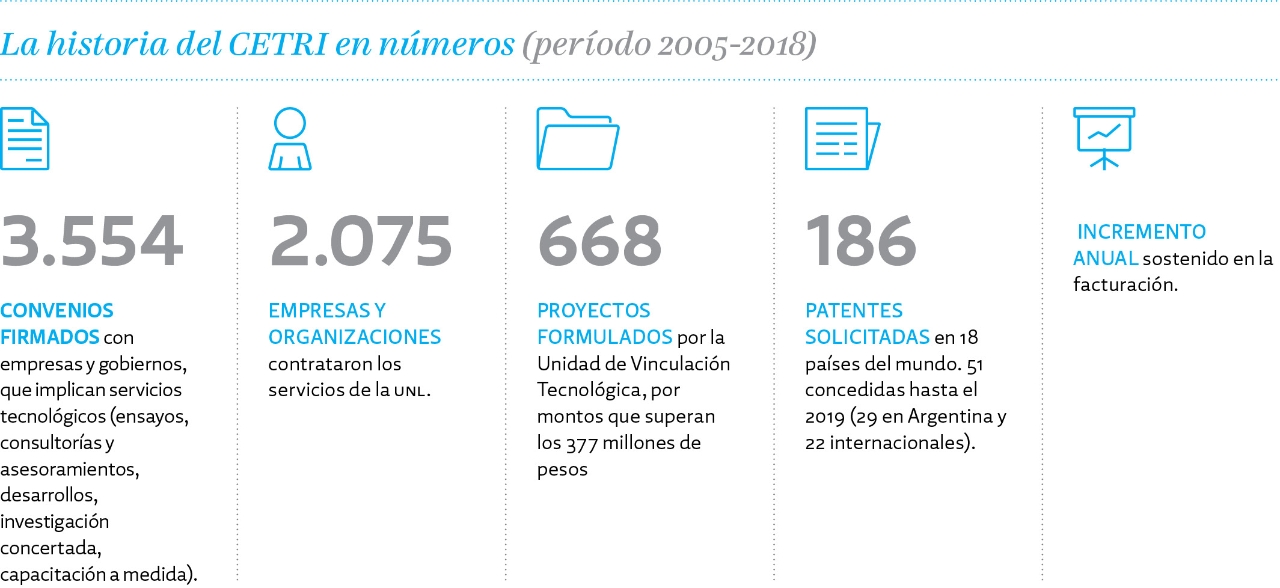 Si bien, la tarea de transferir en la UNL se inició varias décadas antes a la puesta en marcha del Cetri Litoral, la creación de esta unidad dio institucionalidad y especificidad a la vinculación tecnológica, e inauguró un modo de entender la tarea de la extensión de la Universidad, que junto a las misiones de docencia e investigación constituyen los pilares conceptuales e ideológicos de la Universidad Reformista.