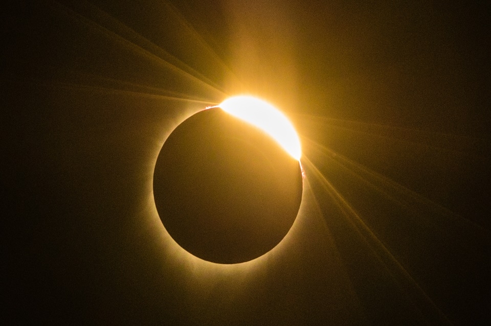Este tipo de eclipses ocurren cuando la luna se interpone entre el sol y la tierra y proyecta su sombra. Esa sombra mide unas cuantas decenas de kilómetros por eso hay solo una franja en la que la luna va a ocultar completamente el sol y se van a ver todas las capas exteriores de la atmósfera solar.