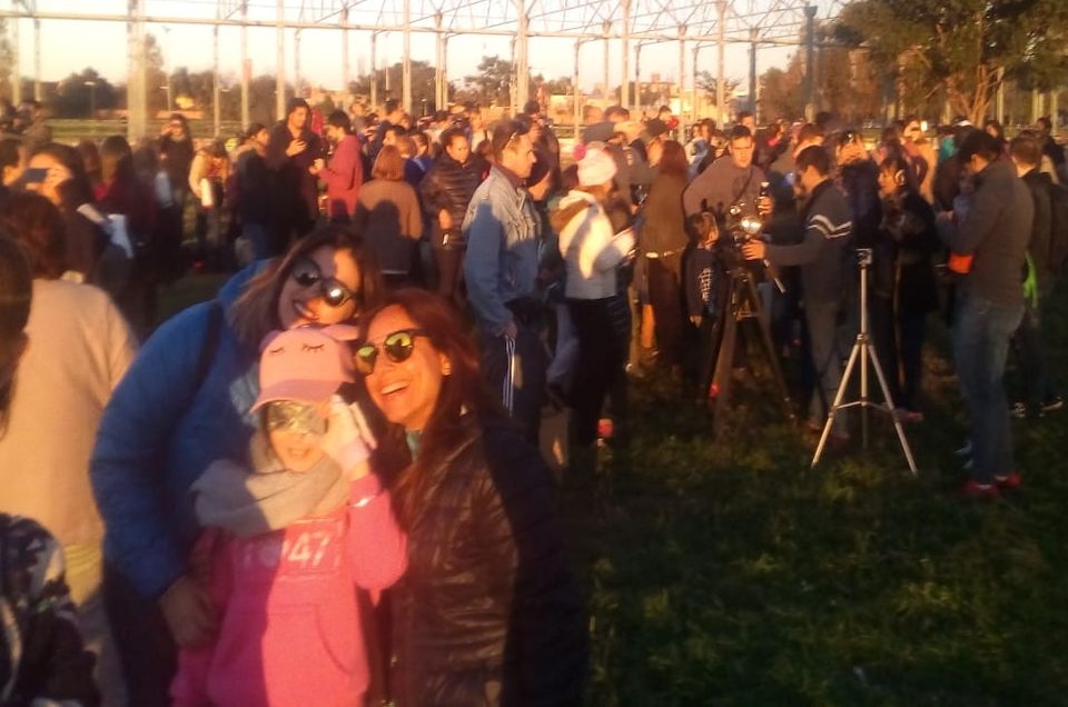 Si bien en Santa Fe el fenómeno se observó de manera parcial, ya que el lugar más indicado para verlo en nuestra provincia era el sur, los vecinos se acercaron al Parque Federal para disfrutar del esperado momento.