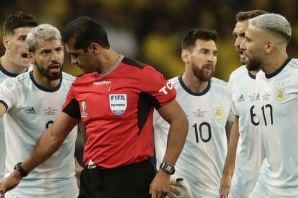 Los jugadores argentinos reclamaron dos penales contra Sergio Agüero y Nicolás Otamendi, en la derrota ante Brasil por 2-0 en el Mineirao, por las semifinales de la Copa América.