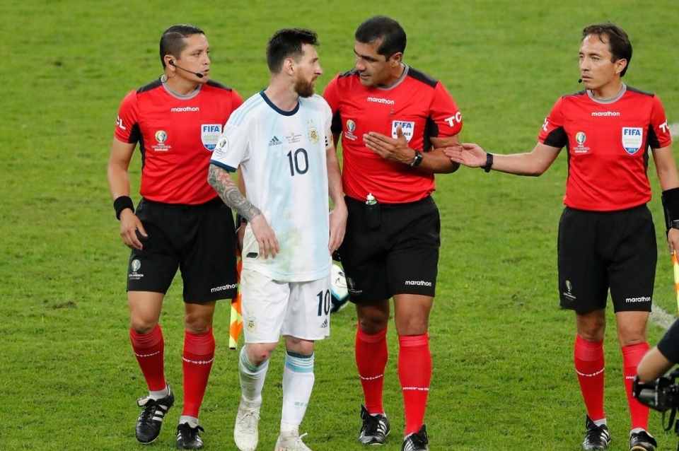 El capitán de la Selección argentina, Lionel Messi, reclamó hoy represalias para la actuación del árbitro ecuatoriano Roddy Zambrano en la derrota 2-0 ante Brasil por la semifinal de la Copa América y afirmó: "Se cansaron de cobrar boludeces en todos los partidos con el VAR y hoy no nos dieron dos penales".
