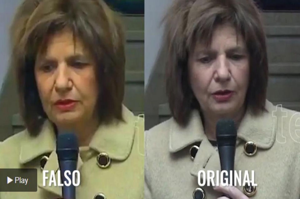 La ministra de Seguridad, Patricia Bullrich, ratificó la falsedad de un video editado de un discurso que pronunció y destacó que, aunque se conoce al autor, el nombre no fue publicado porque no se realizó una denuncia en la Justicia.