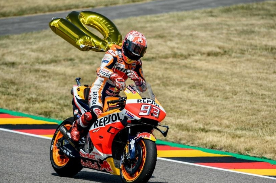 Con la de este domingo, son 7 las victorias consecutivas de Márquez en el circuito de Sachsenring, lo que le permite igualar el récord del italiano Valentino Rossi de número de victorias seguidas en un mismo circuito, el de Mugello en caso del seis veces campeón de MotoGP.