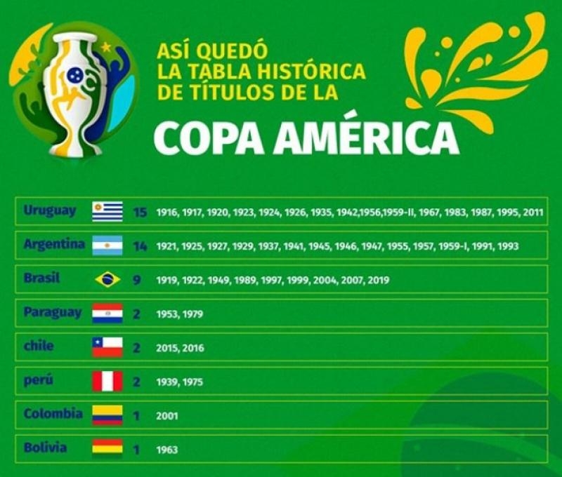 Con la novena estrella, Brasil le sacó todavía más diferencia a Paraguay, Perú y Chile (2) pero todavía sigue lejos de Argentina (14) y Uruguay, el máximo ganador con quince. Los únicos que ganaron una sola edición fueron Colombia y Bolivia.