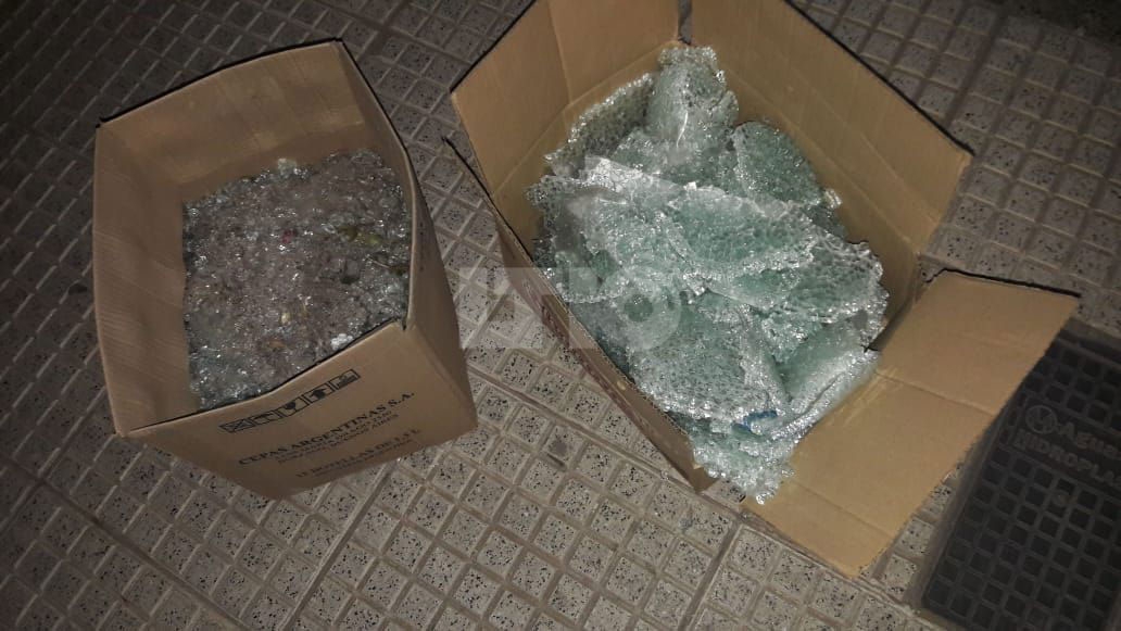 Los vidrios de la puerta de ingreso al centro médico (Foto: LT10)