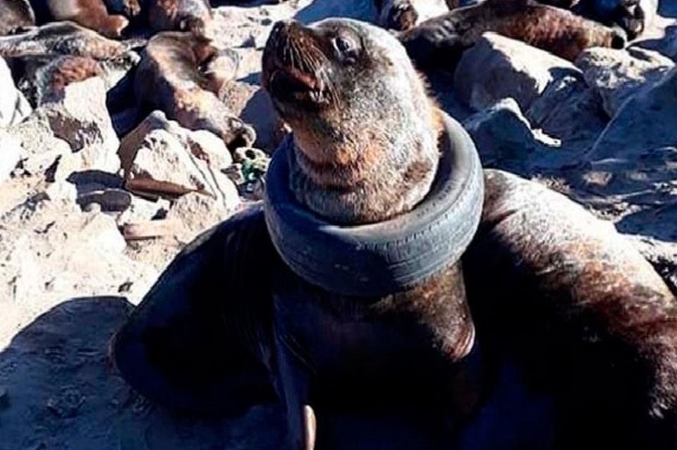 Un lobo marino fue encontrado con un neumático alrededor del cuello y generó indignación en Mar del Plata. Ocurrió este lunes durante el fin de semana largo pero a pesar de que su vida no corre peligro, todavía no lograron sacárselo.