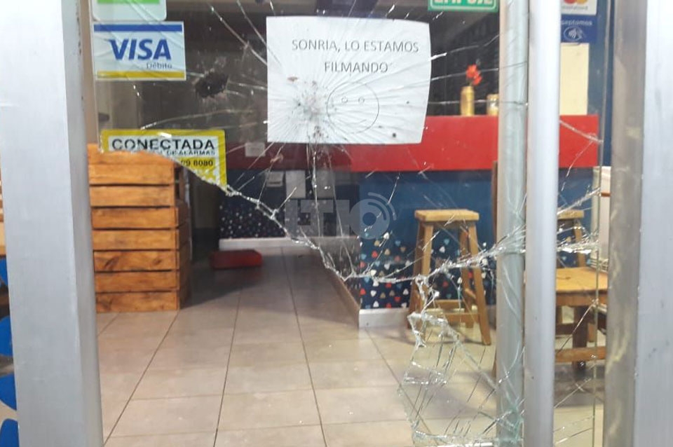 Los ladrones se llevaron dinero tras romper el blindex (Foto: LT10)