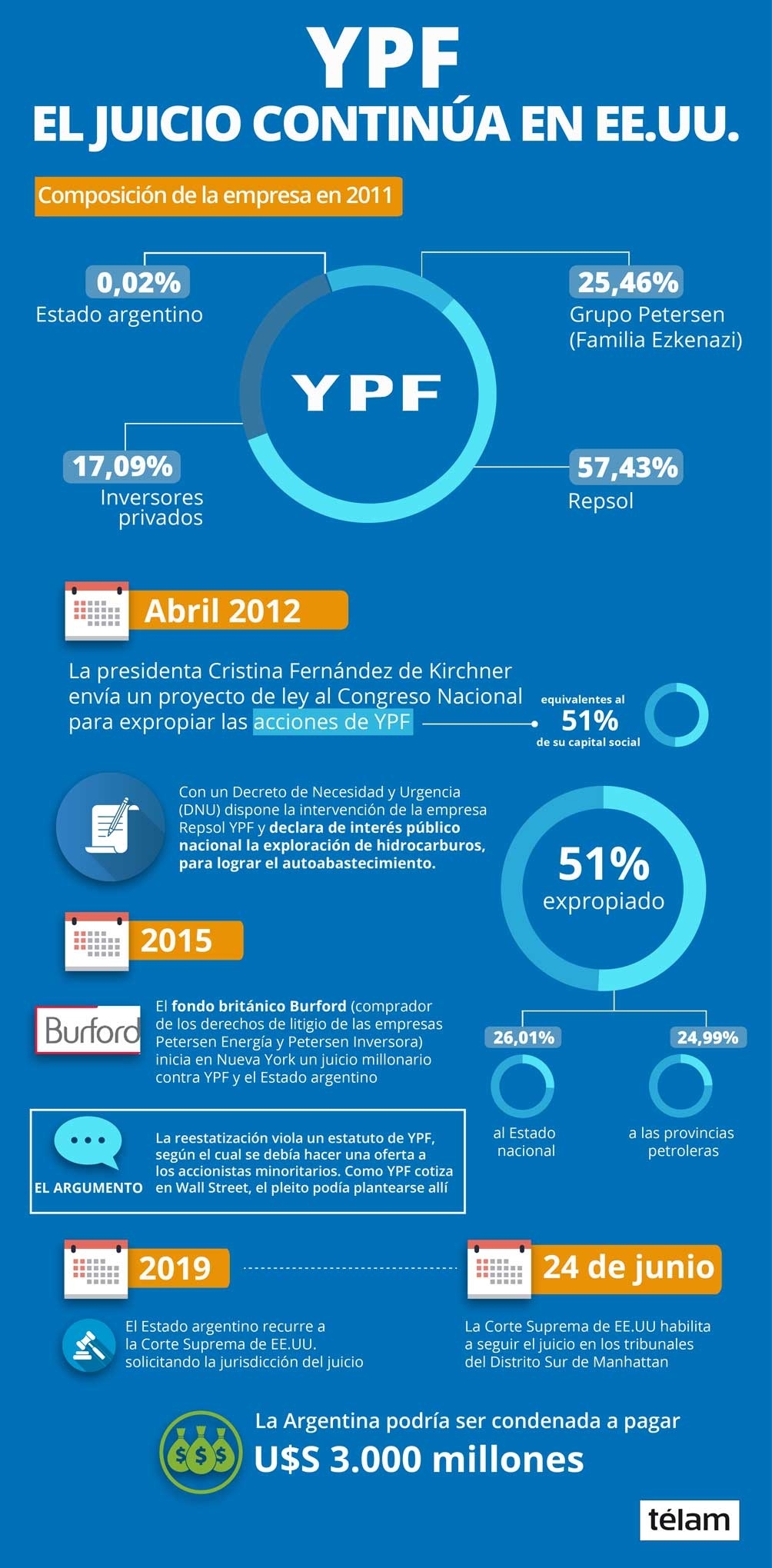 La República Argentina y la empresa YPF tendrán este jueves su primera audiencia en los tribunales de Nueva York para enfrentar la demanda millonaria entablada por las empresas Petersen e Eaton Park, a raíz de considerarse perjudicadas por la nacionalización de la petrolera en 2012.