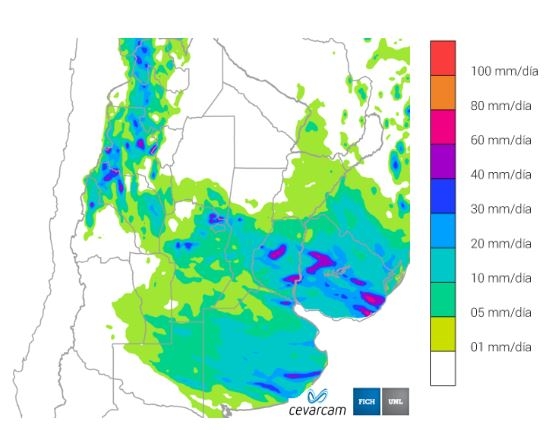 Cielo parcial cubierto a cubierto, con mejoramientos temporales. Condiciones algo inestables. Baja posibilidad de lluvias débiles y dispersas o lloviznas. Temperaturas en suave descenso. Vientos leves a moderados predominando del sector sur.