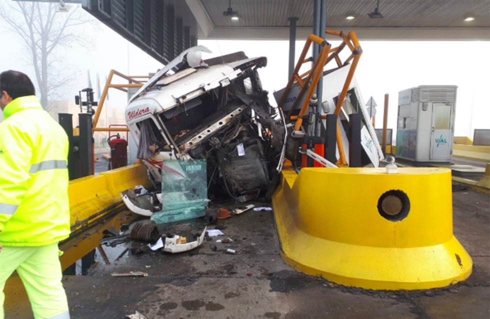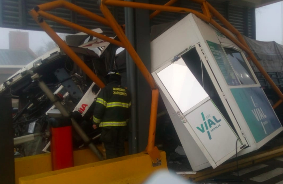 Un accidente de proporciones se produjo hoy cerca de las 9 de la mañana cuando un camión de gran porte embistió una cabina de peaje en la Austopista Rosario-Santa Fe y también chocó contra un vehículo utilitario. El hecho ocurrió en el peaje ubicado en el kilómetro 22 a la altura de Puerto General San Martín