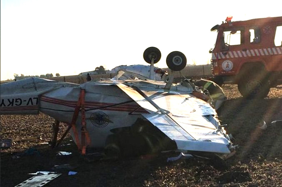 La pequeña aeronave se precipitó a poco de haber despegado en una zona rural cercano al cruce de la autopista a Córdoba con la ruta s26. En el interior iba el instructor, que estaba al mando de los controles, y un alumno