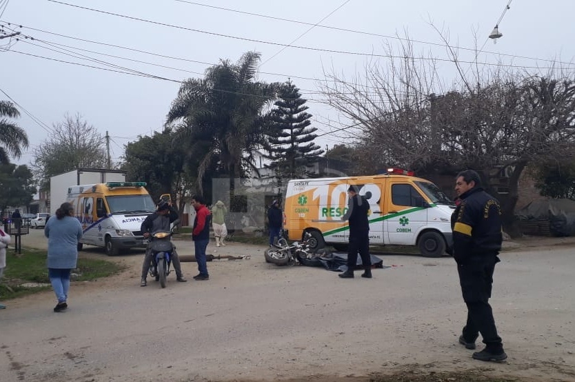 El siniestro se produjo alrededor de las 9 de la mañana de este viernes, en la intersección de las calles de 1º de Mayo y Ayacucho de barrio Transporte. El conductor de la moto intentó frenar en la esquina muy cerca del camión, perdió el control y terminó debajo del vehículo de gran porte.
