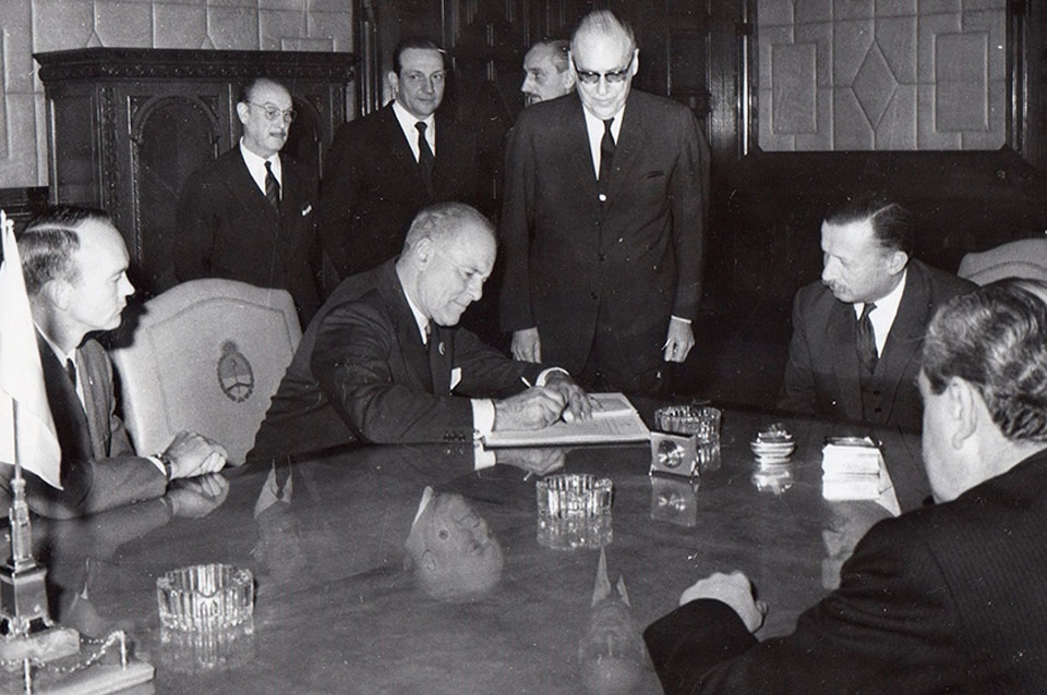 Antes de partir hacia Chile, próxima etapa de la gira continental, dejaron en su paso por la Casa Rosada, donde concurrieron acompañados por el embajador de Estados Unidos en Argentina, David Lodge, un acta protocolar y unas cuantas fotos con el presidente de facto.