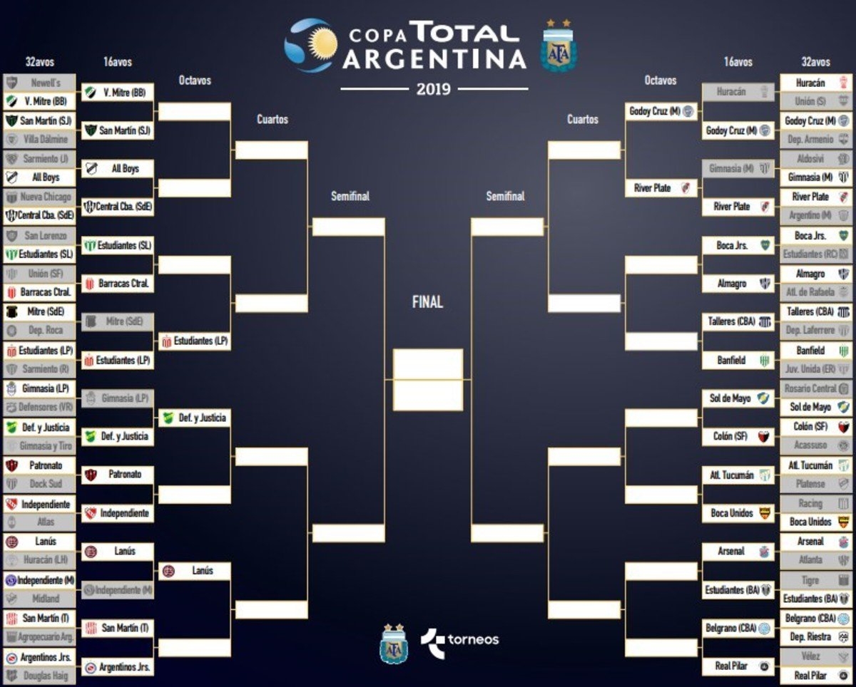 Los otros equipos que ya están en octavos de final son Defensa y Justicia (espera por el ganador de Patronato-Independiente), Estudiantes de La Plata (se medirá ante Estudiantes de San Luis o Barracas Central) y Lanús (irá ante San Martín de Tucumán o Argentinos Juniors).