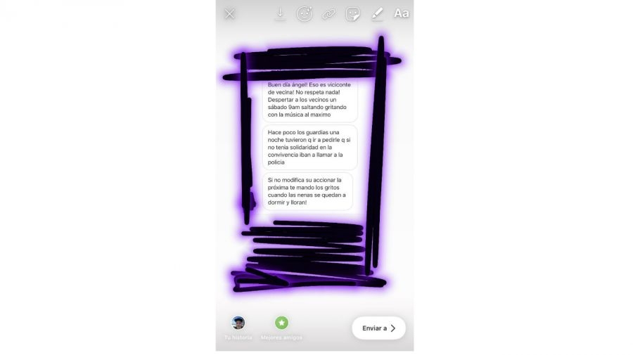 “¡Buen día Ángel! Eso es Viciconte de vecina. ¡No respeta nada! Despertar a los vecinos un sábado 9 am saltando y gritando con la música al máximo”, inicia el mensaje de la captura de chat de Instagram que compartió el periodista en sus redes sociales.
