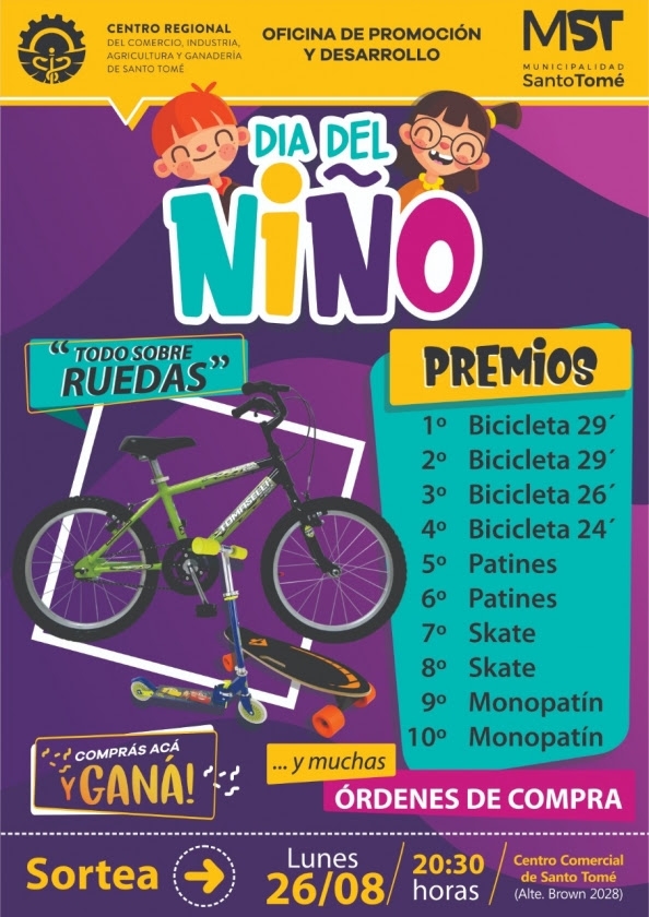 Con motivo del Día del Niño que se festejará el próximo 18 de agosto, la Municipalidad de Santo Tomé y el Centro Comercial pusieron en marcha la promoción “Todo sobre ruedas”.