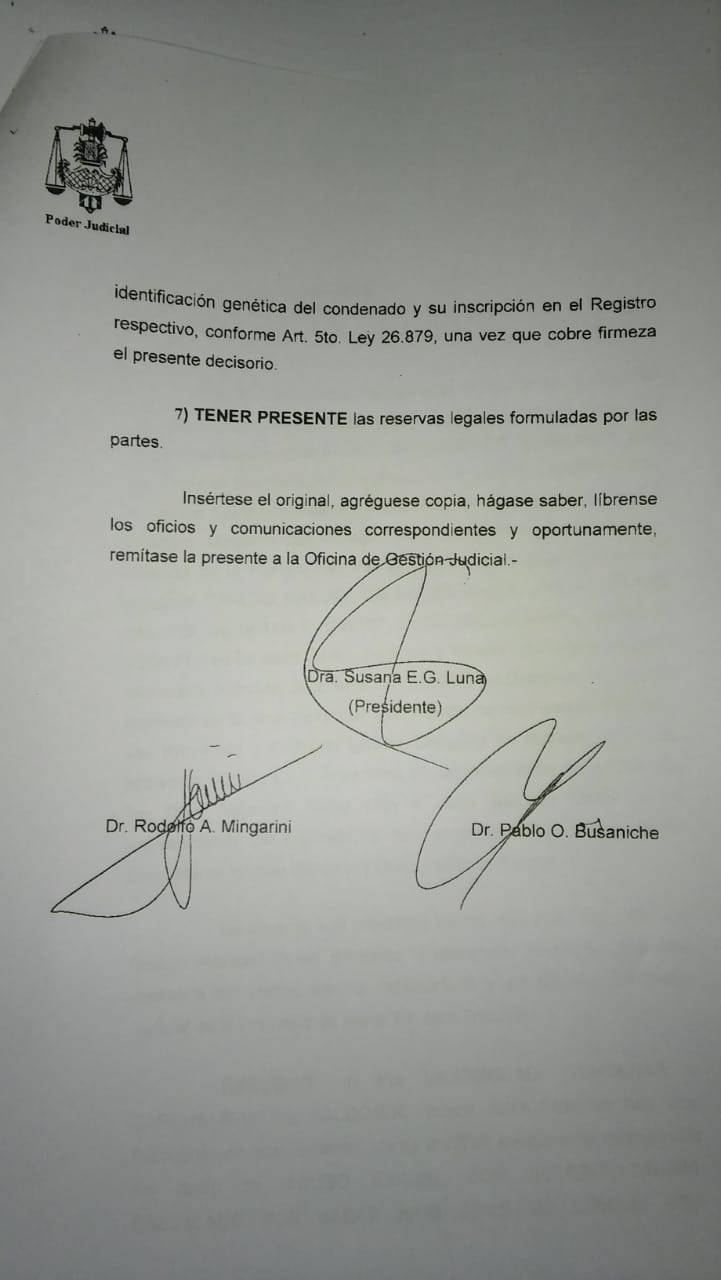 En diálogo con el móvil de LT10, el fiscal Grimberg manifestó su conformidad y remarcó que si bien "no hubo una prueba crucial", "todo el plexo probatorio fue fundamental para alcanzar la condena".