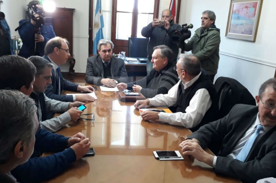 El ministro de Gobierno y Reforma del Estado Pablo Farías, junto a su par de Economía Gonzalo Saglione, recibieron este miércoles a senadores provinciales en Casa Gris. En el encuentro, los representantes departamentales plantearon la crítica situación económica de 14 municipios y comunas cuyas autoridades ya se ven impedidas de pagar sueldos a sus empleados.