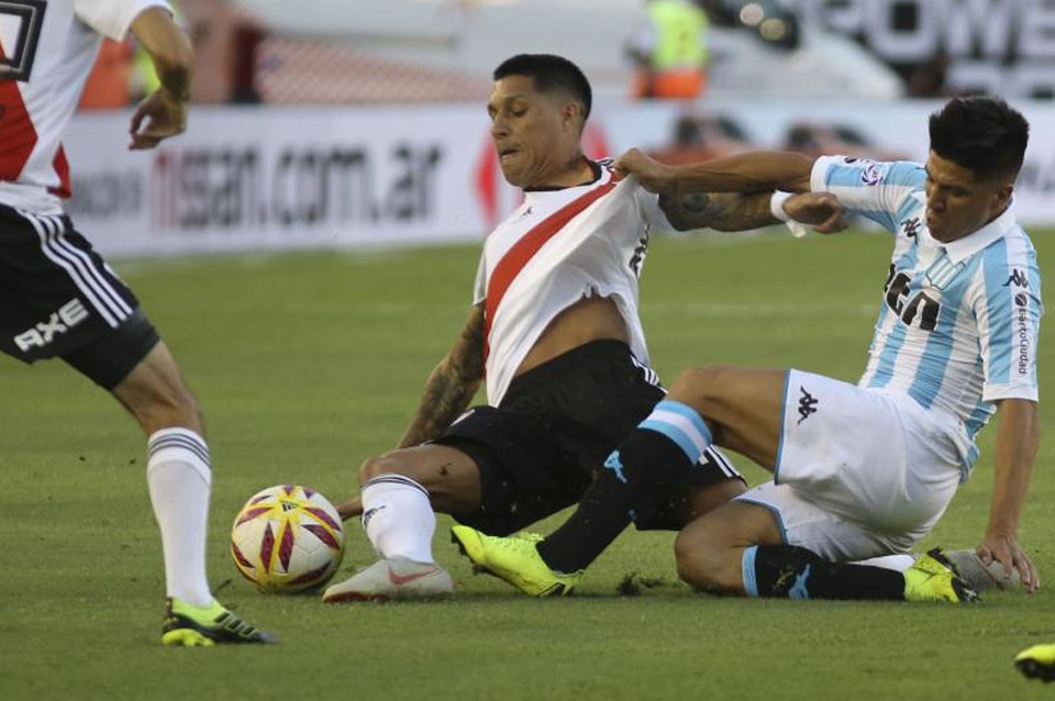 River: Franco Armani; Gonzalo Montiel, Robert Rojas, Lucas Martínez Quarta, Milton Casco; ignacio Fernández, Enzo Pérez, Exequiel Palacios, Jorge Carrascal; Rafael Santos Borré y Matías Suárez. Director técnico: Marcelo Gallardo.