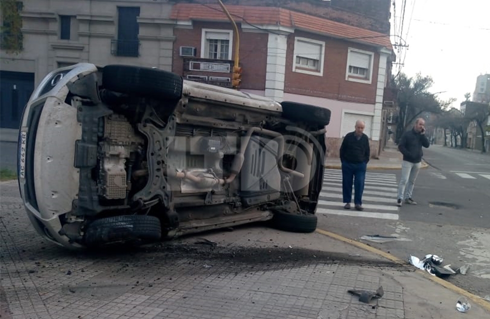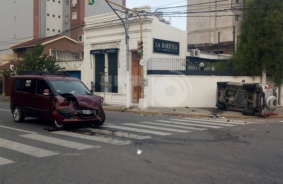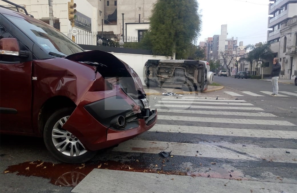 Un violento accidente se dio esta mañana entre dos vehículos en el centro de la ciudad. La colisión ocurrió pasadas las 8 de la mañana y por causas que se analizan una camioneta Fiat Doblo chocó de manera frontal a una Chery Tiggo que por el fuerte impacto terminó arriba de la vereda y apoyada en uno de sus laterales.