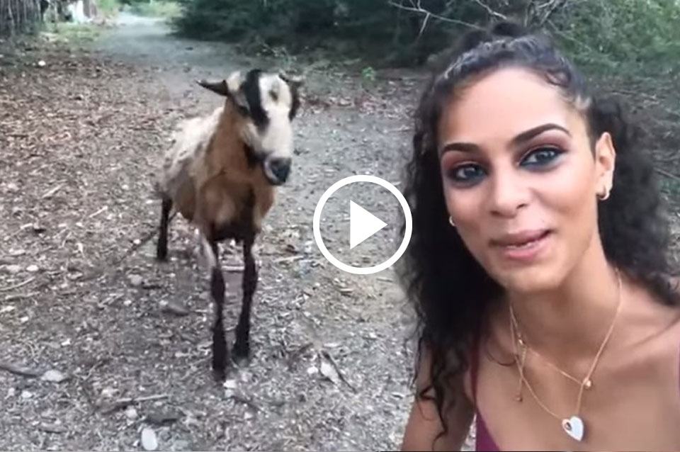 Una chica que fue embestida por una cabra mientras se tomaba un “selfie” con ella y el video se viralizó al momento.
