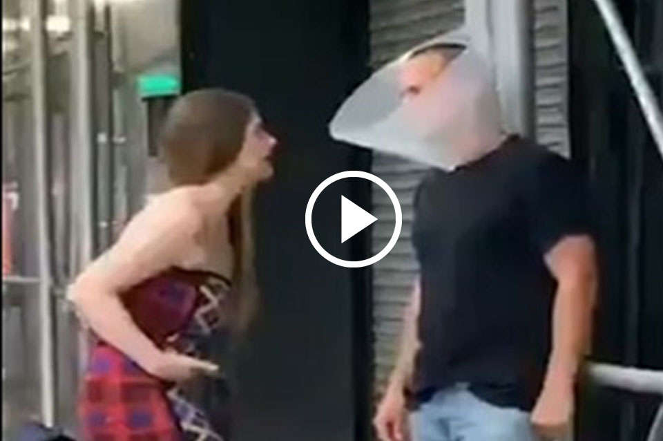 Se viralizó un video que muestra como una mujer, tras un ataque de celos, le pone el conocido "cono de la vergüenza" a su pareja.