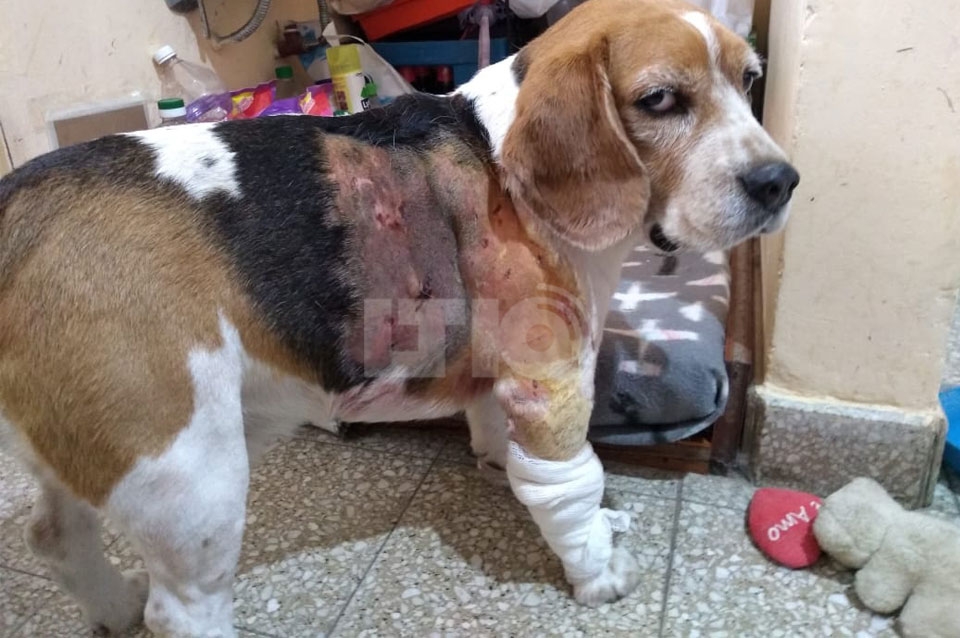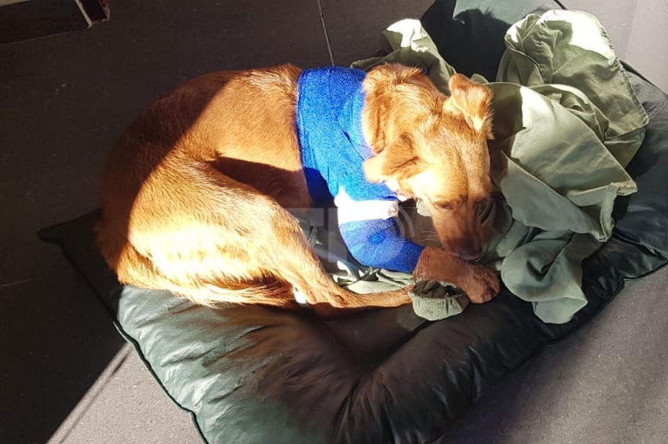 El perrito mestizo sufrió graves heridas en su torso y una de sus patas.