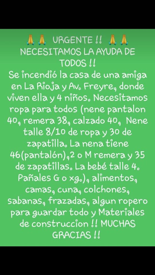 Es por eso que piden la colaboración de la gente con ropa y calzado para los chicos, alimentos, camas, colchones, frazadas,materiales de construcción y un mueble donde poder guardar lo donado.