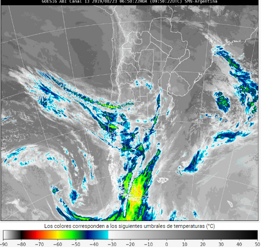 Mapa satelital de este viernes (Fuente: SMN)