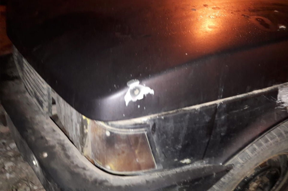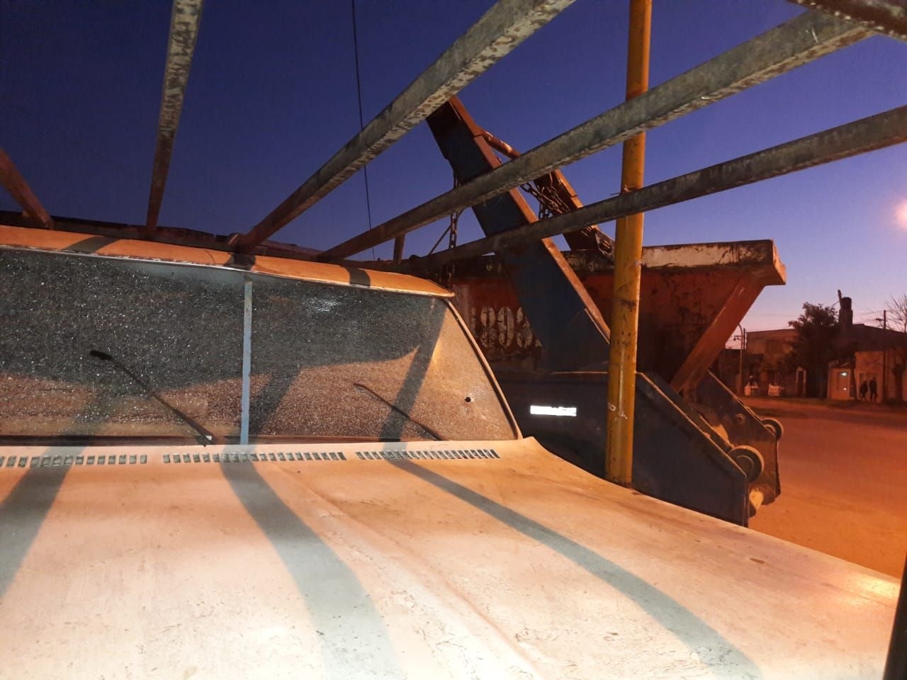 La camioneta del hijo del dueño de casa, con un impacto de bala en el parabrisa (Foto: LT10)