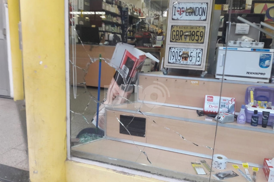 El local de cosméticos y elementos para peluquerías Raffi Cosméticos fue nuevamente blanco de delincuentes esta madrugada. Ayer, desconocidos rompieron de un piedrazo la vidriera y se llevaron mercadería exhibida, y hoy operaron de la misma manera.