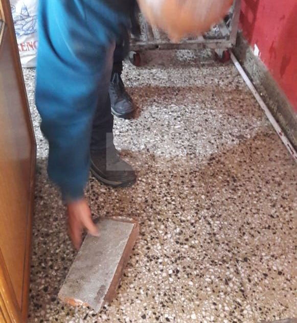 El ladrillo con el que rompieron la vidriera (Foto: LT10)