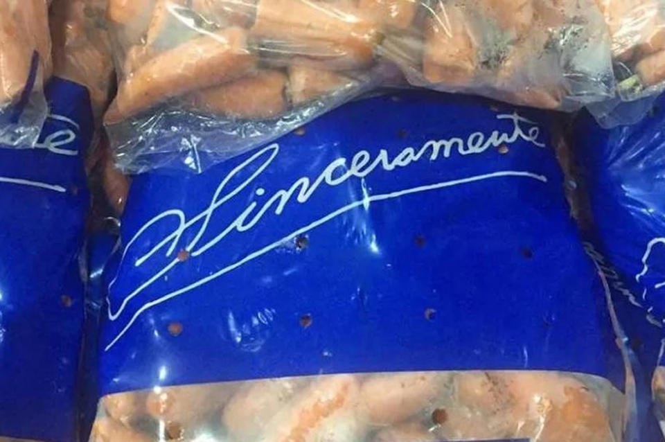 Según el diario "El Marplatense", las zanahorias llegaron el jueves pasado, provenientes de un habitual productor santafesino. Lo más llamativo fue que color azul predominante en el plástico del envoltorio, en que se puede leer la palabra "Sinceramente".