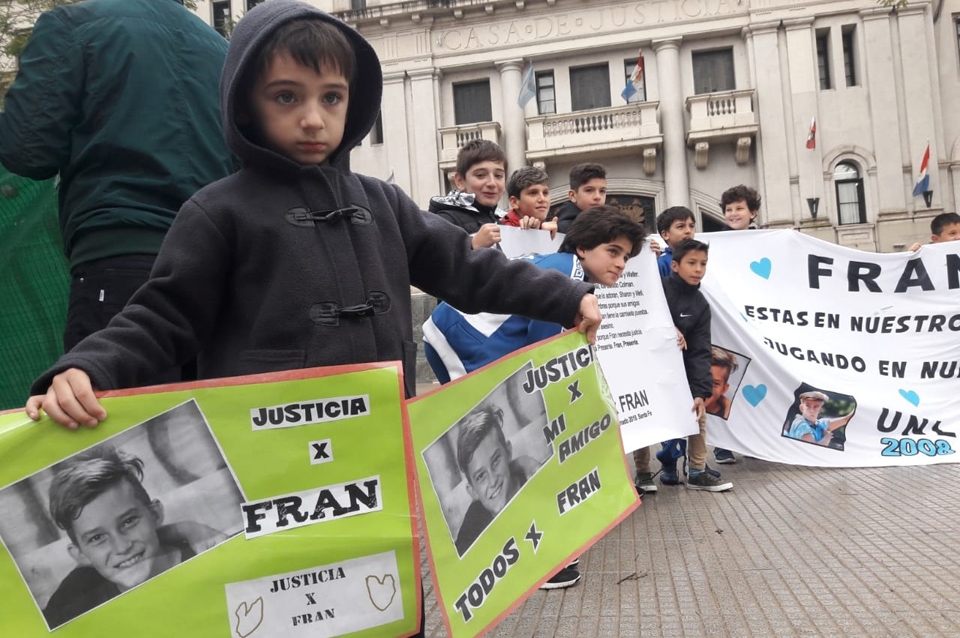 Esta mañana desde las 8 familiares de Francisco Sueldo, el nene de 11 años que murió dentro del vehículo donde estaba tras ser embestido por otro conducido por el imputado de la causa se manifestaron frente los Tribunales con el acompañamiento de toda la ciudadanía.