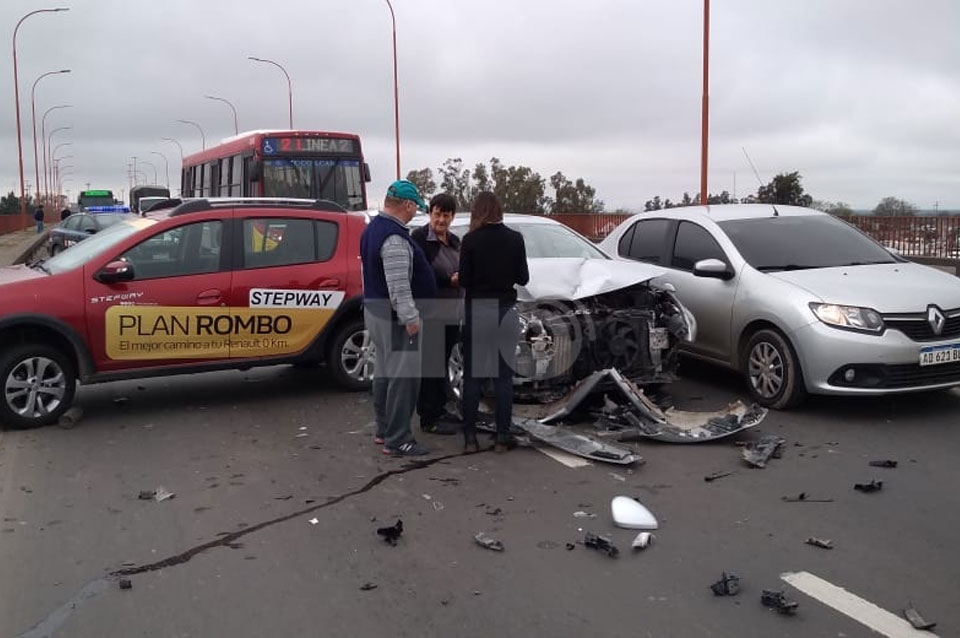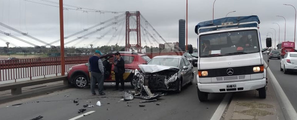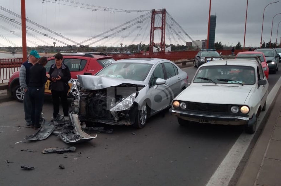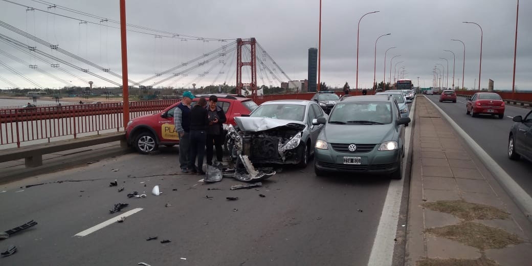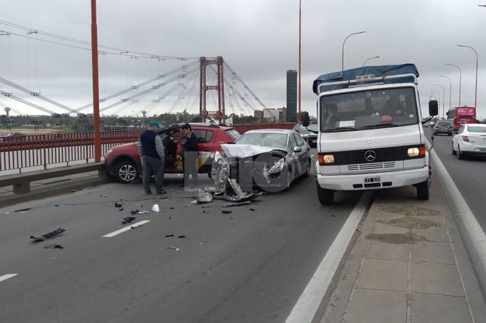 Un fuerte choque ocurrió esta mañana sobre el Puente Oroño en la mano que accede a la ciudad de Santa Fe, complicando el tránsito no sólo en el viaducto sino también en la zona de la ruta 168 donde además se lleva a cabo la manifestación de agrupaciones sociales.