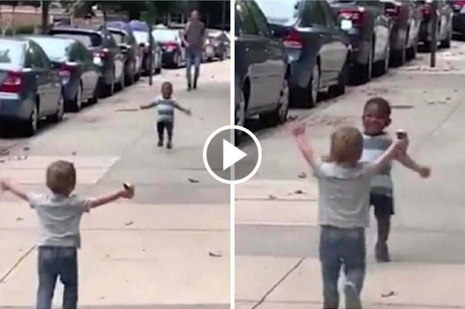 Los nenes se conocieron hace un año y a partir de ese momento se volvieron inseparables. Con brazos abiertos y una enorme sonrisa, se los ve corriendo muy rápido para llegar al otro y saludarse de la forma más conmovedora.