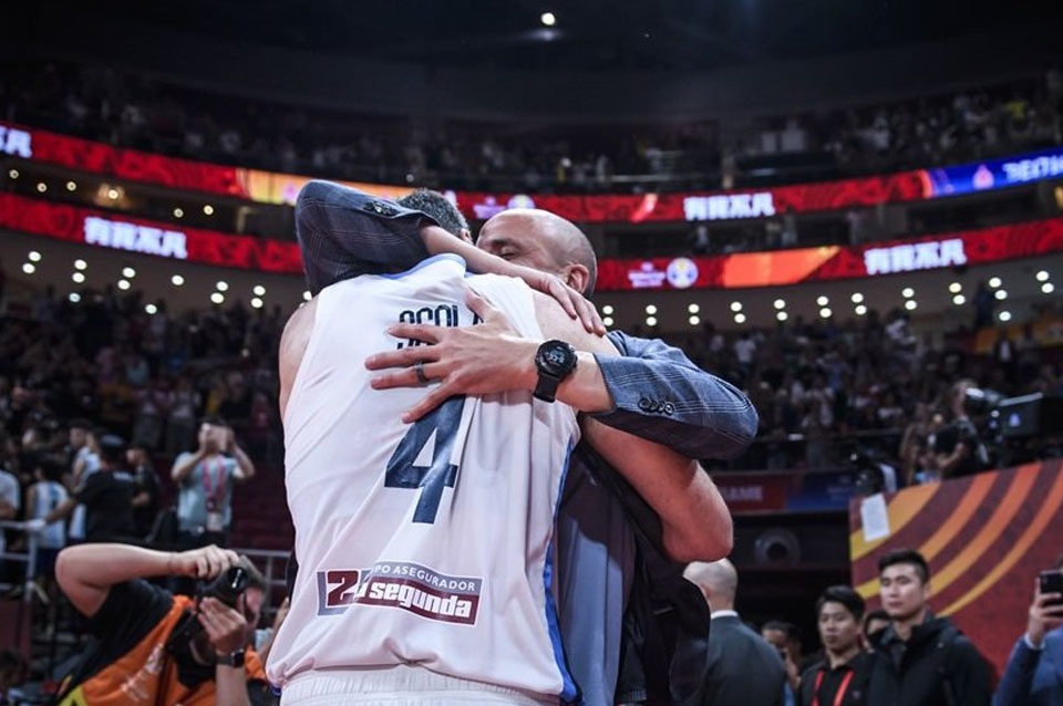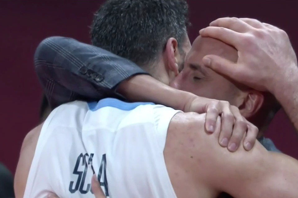Finalizado el partido ante Francia, en el que Argentina ganó y logró el pase a la final del Mundial, el capitán Luis Scola se fundió en un abrazo con Manu Ginobili, quien alentó al equipo todo el partido. Dos símbolos de la Generación Dorada que siguen emocionando a todos.