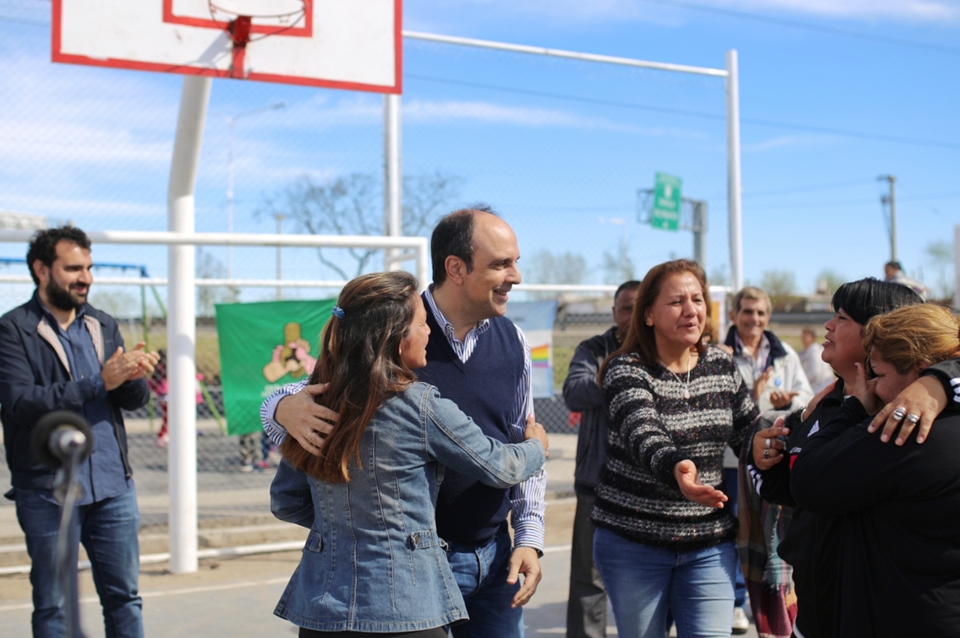 Mónica es una vecina de Barranquitas y en medio del acto, manifestó: “Estoy muy agradecida y contenta de que en el barrio se haya podido construir esto para los chicos, ver cómo día a día ellos sonríen y disfrutan de esto que se pudo hacer acá. Pero también hubo otras cosas como el cordón cuneta y para mí y para todos los vecinos es una alegría inmensa ver cómo los más chicos disfrutan, se divierten y también los adultos que ocupamos este espacio, porque es un lugar recreativo para nosotros”.