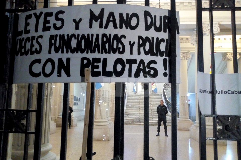 Familiares de Julio Cabal, amigos, clientes de su negocio y la sociedad toda reclamaron frente a la casa Gris mayor seguridad ante la escalada de robos y asesinatos que se vienen dando en la ciudad: situación que se agravó luego de las elecciones donde se anunció un cambio de gobierno a nivel provincial y municipal.