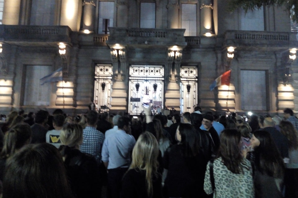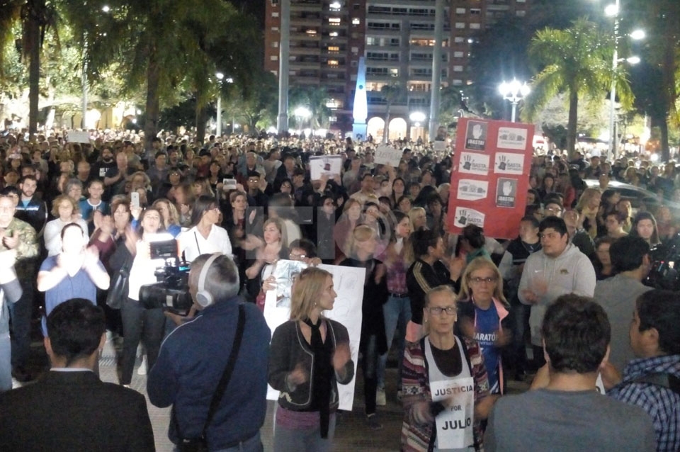 Con velas, carteles y flores, miles de santafesinos se concentraron de manera expontanea frente a la Casa de Gobierno luego de marchar 10 cuadras desde la fiambrería donde asesinaron de un balazo en el pecho a Julio Cabal.