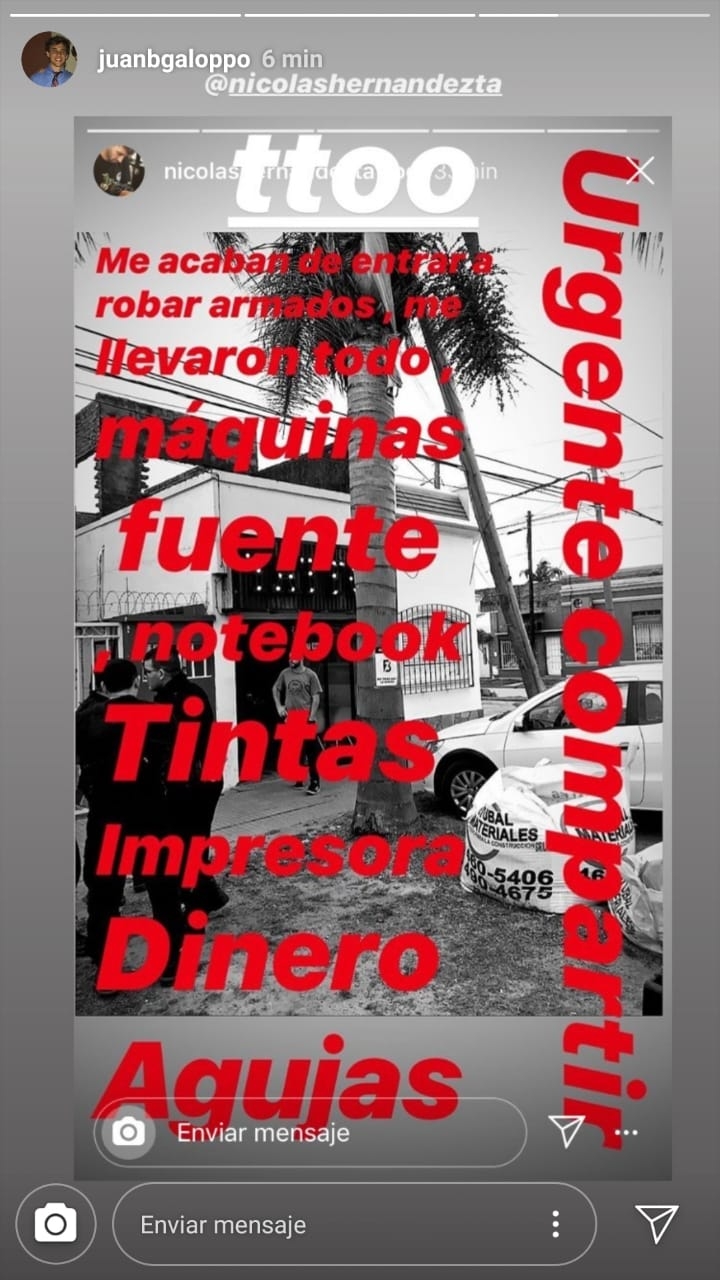 Nicolás, el dueño del local no podrá seguir trabajando ya que le llevaron todas sus herramientas y pide colaboración para poder recuperarlas y continuar con su negocio.