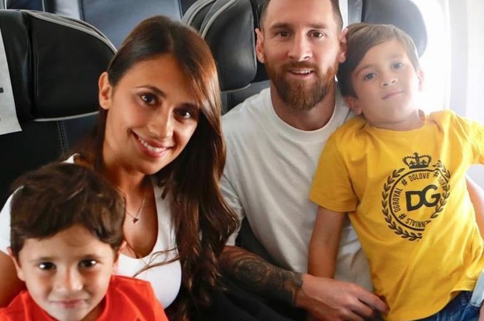 El crack rosarino publicó una foto sentado en el avión junto a su mujer, Antonela Roccuzzo, y dos de los tres hijos de la familia: Thiago y Mateo.