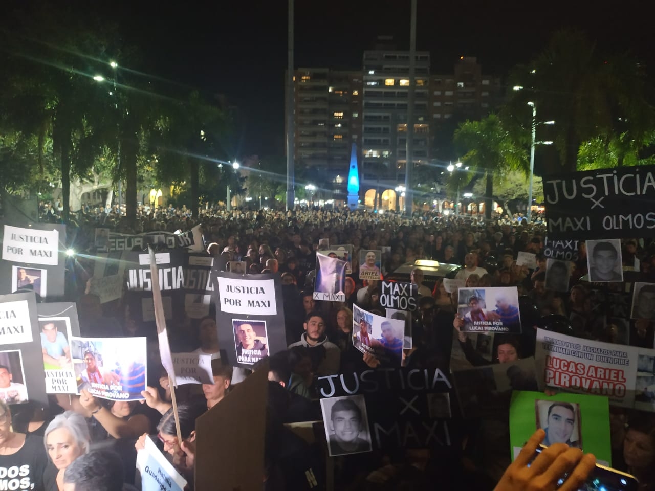 La marcha de hoy, multitudinaria también, estuvo impulsada por la familia de Maxi Olmos, a la que se sumaron los padres de Julio Cabal, la mamá de Dieguito Román, la hija de Natalia Catán, la esposa de Horacio Borda, la mamá de Augusto Paulón, los hermanos de Lucas Pirovano, la tía de Jésica Ronsoni, unidos por la tragedia, la inseguridad, la muerte injusta, pero también por la lucha en el incansable pedido de justicia.