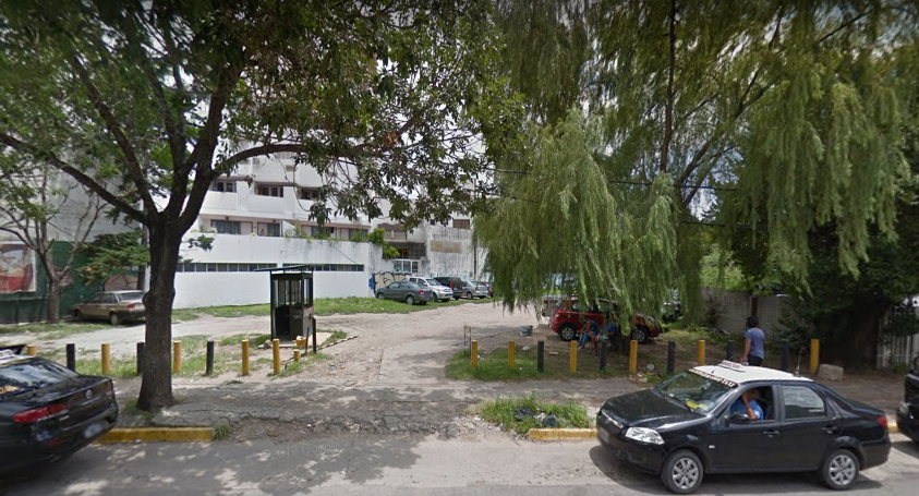Está ubicado en el ingreso a una playa de estacionamiento que tiene salida por calle San Martín.