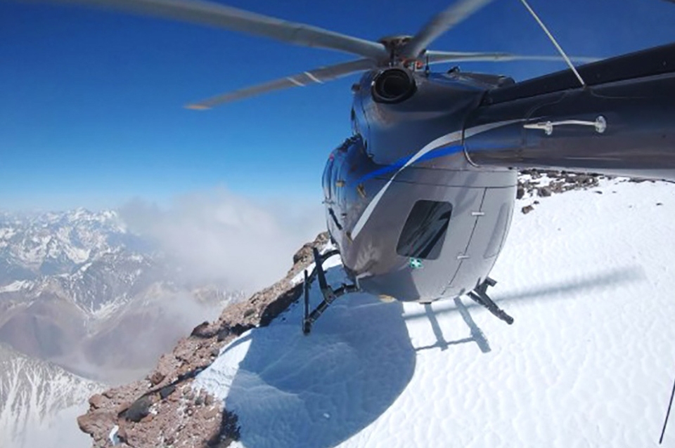 Un helicóptero de dos motores aterrizó por primera vez en la cima del cerro Aconcagua, en Mendoza, a 6.962 metros de altura, abriendo de esta manera la posibilidad de realizar rescates por esta vía, aún en condiciones extremas.