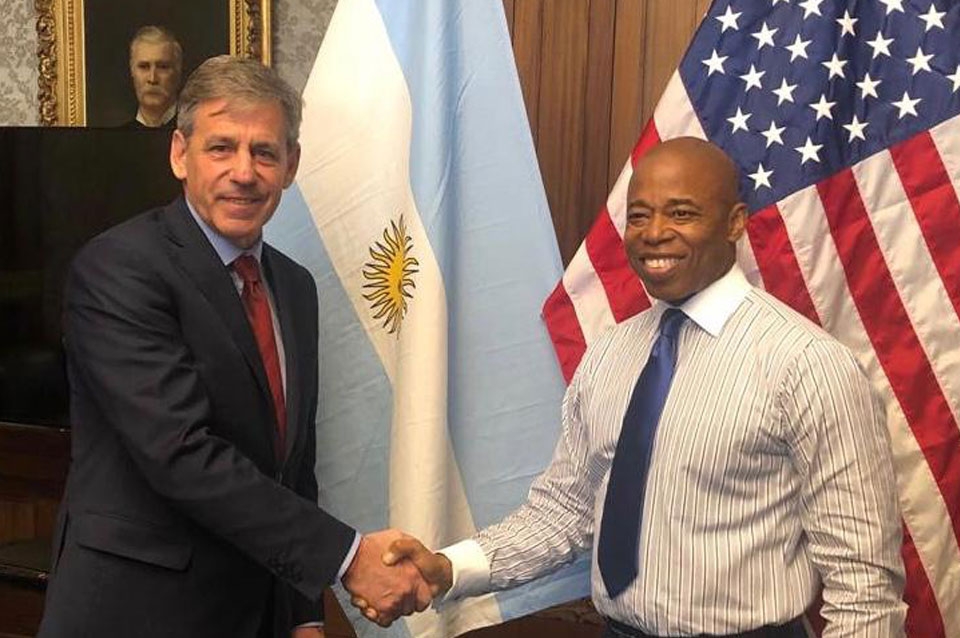 El intendente electo Emilio Jatón mantuvo este jueves un encuentro con el presidente del condado de Brooklyn, Eric Adams. La reunión se produjo en el marco de la visita de Jatón a Nueva York, Estados Unidos, donde participa del 20 al 27 de septiembre de la Semana de Alto Nivel de las Naciones Unidas.