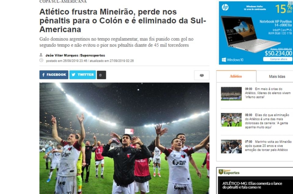 El sitio de O Globo destacó "Mineiro terminará 2019 sin títulos" y en el análisis subrayó: "Atlético tendrá su segundo año seguido sin ganar títulos. La esperanza era obtener la Sudamericana pero esa ilusión se vino abaja al caer 4-3 en los penales ante Colón".